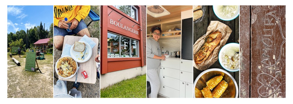 En el pueblito de Les Bergeronnes, encontramos la panadería «la p’tite cochonne» que prepara Kouig amann, una tarta de mantequilla típica de la Bretaña francesa y una focaccias de panceta y queso madurado, que hicieron de nuestra cena un banquete.